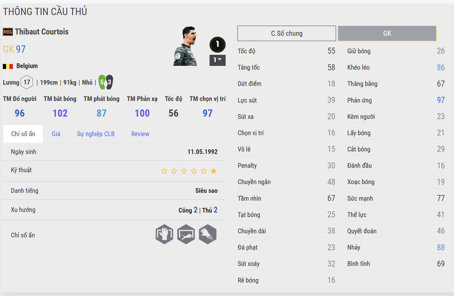 Courtois luôn là thủ môn được tin dùng bậc nhất game thời điểm hiện tại. Dù qua rất nhiều mùa giải khác nhau nhưng với những mùa giải cũ của thủ thành người Bỉ luôn có chỗ đứng nhất định trong việc cân lương và tối ưu đội hình.