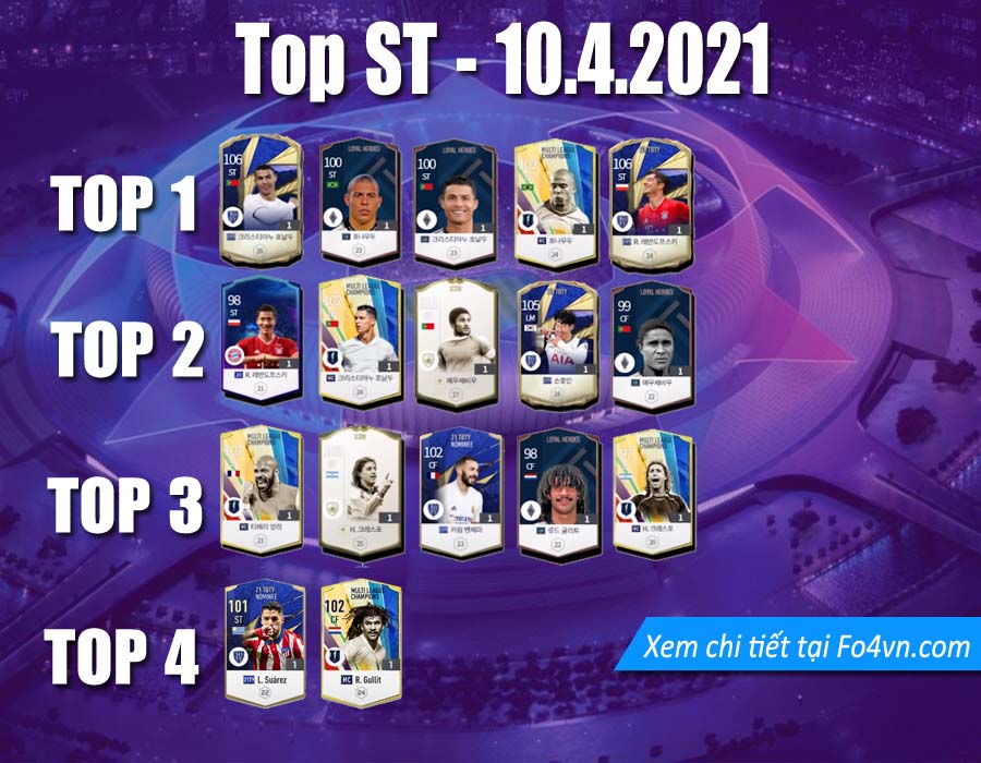 Với việc tăng lương 200 liệu nó có thay đổi nào trong cách lựa chọn tiền đạo cho đội hình của mình hay không ? Mời các bạn đến với bảng xếp hạng tính đến 10.4.2021 - Những ST được ưa chuộng nhất