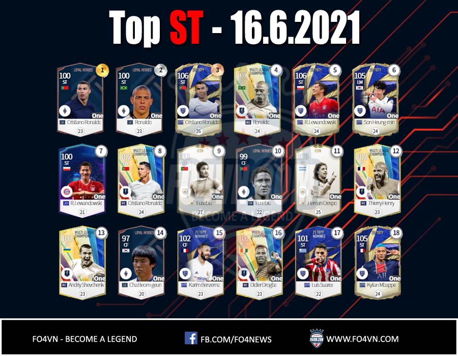 Chúng ta sẽ đến với top các tiền đạo được ưa chuộng nhất trong game, với các vị trí cụ thể