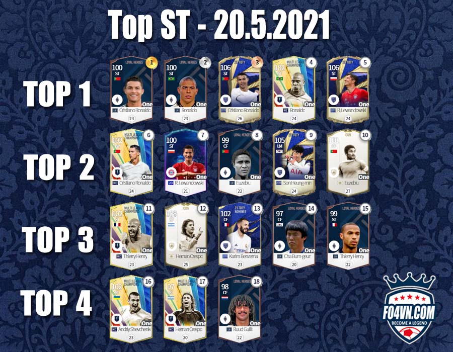 Đã để các bạn phải chờ lâu, chúng ta sẽ đến với loạt bài top vị trí của một tháng qua. Với những cái tên đang được rất nhiều người sử dụng. Và hãy thử xem có bao nhiêu cầu thủ nằm trong đội hình của bạn nhé.