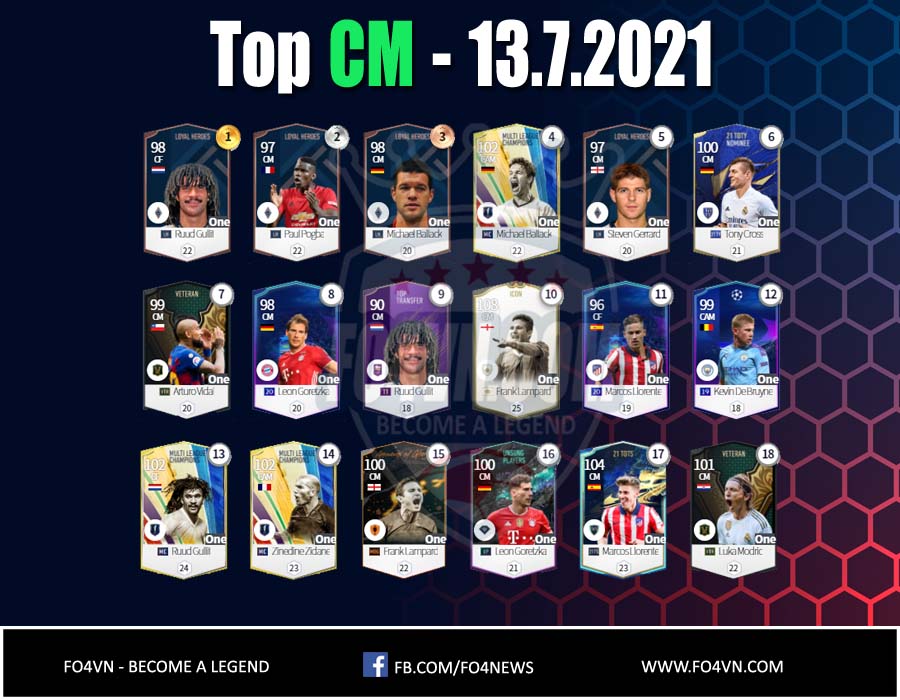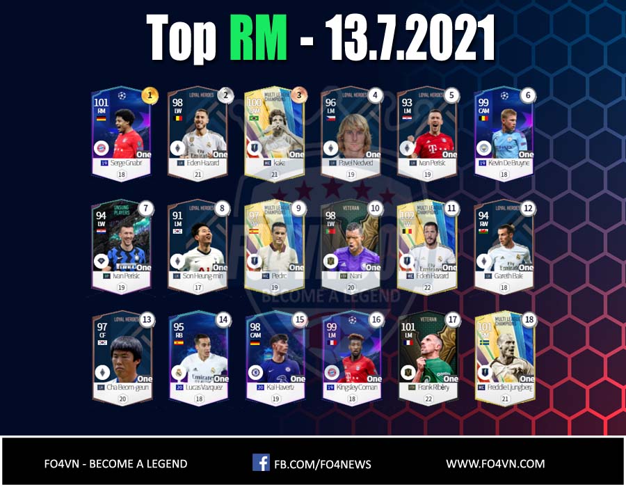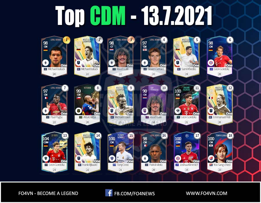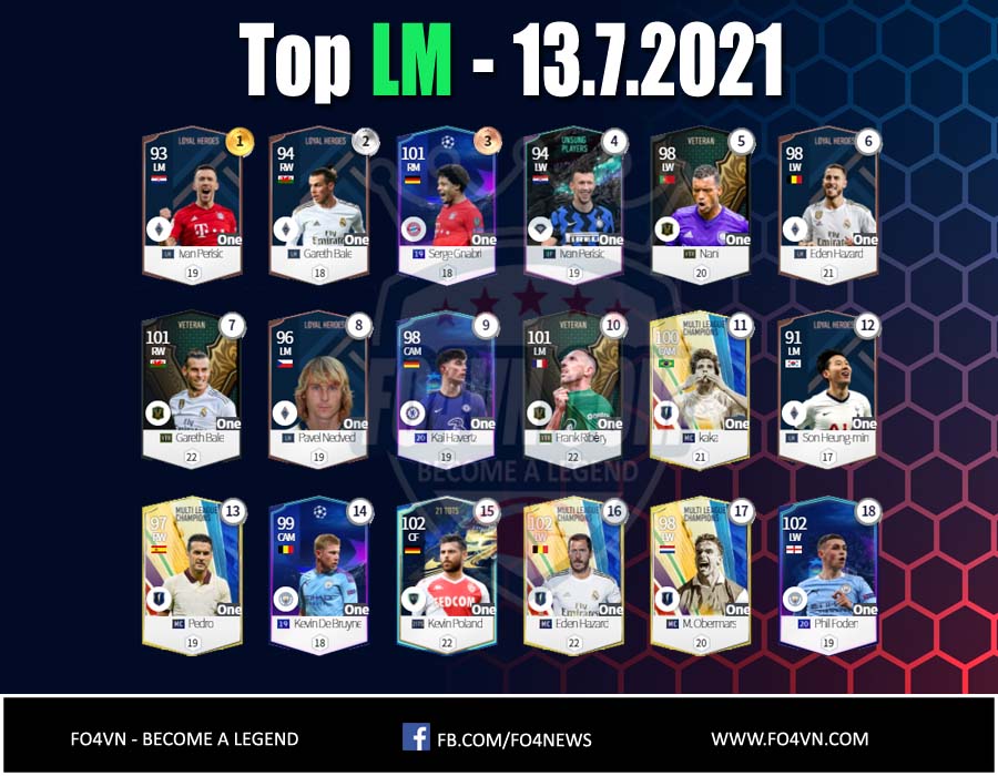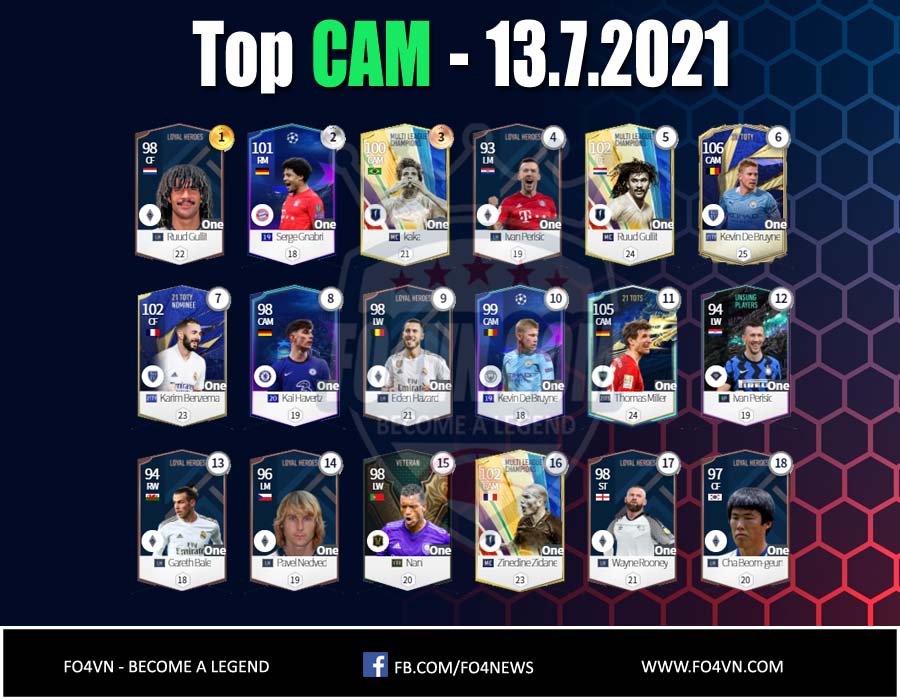 Mời các bạn đến với thống kê cầu thủ được ưa chuộng nhất từng vị trí, tính theo ranking 1vs1 từ 1-5000