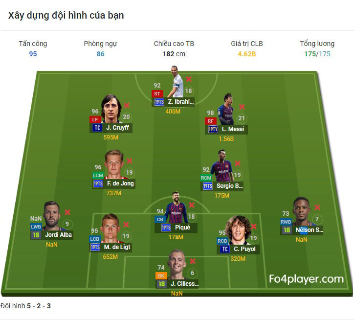 Đội hình này tương đối mạnh, đặc biệt bộ 3 tấn công là sự góp mặt của Ibra, Cruyff và Messi.