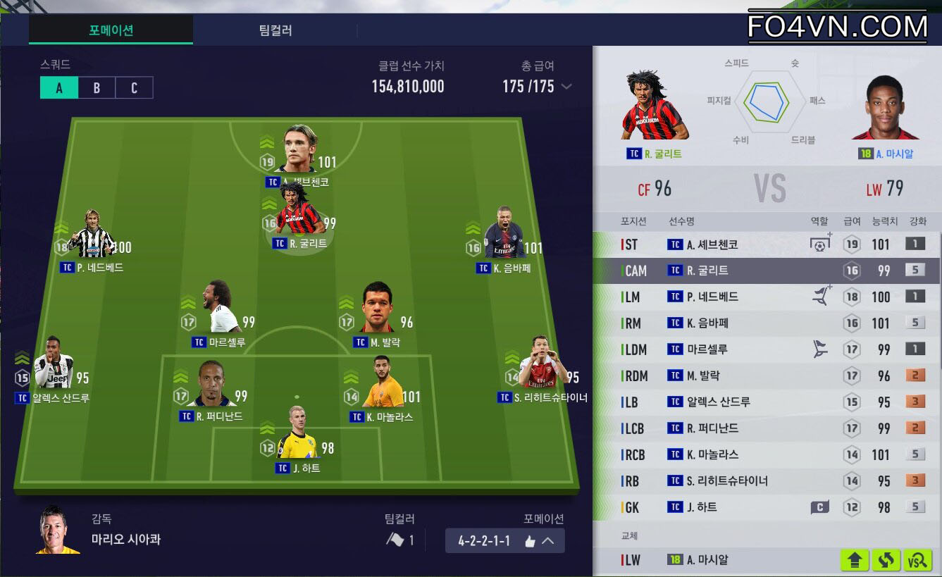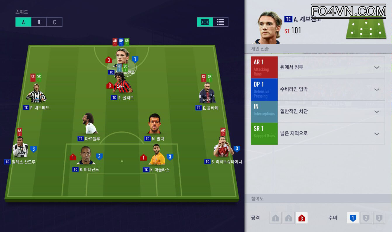 Tiền đạo cắm sử dụng Shevchenko, cầu thủ có tốc độ, sự linh hoạt và khả năng dứt điểm cực kì khét. Tiền vệ công sẽ là sự góp mặt của Gullit. Ở mùa giải này Gullit có chỉ số không quá cao, tuy nhiên với mức thẻ cộng 5 thì hoàn toàn có thể cải thiện chất lượng và giá trí mà Gullit mang lại.