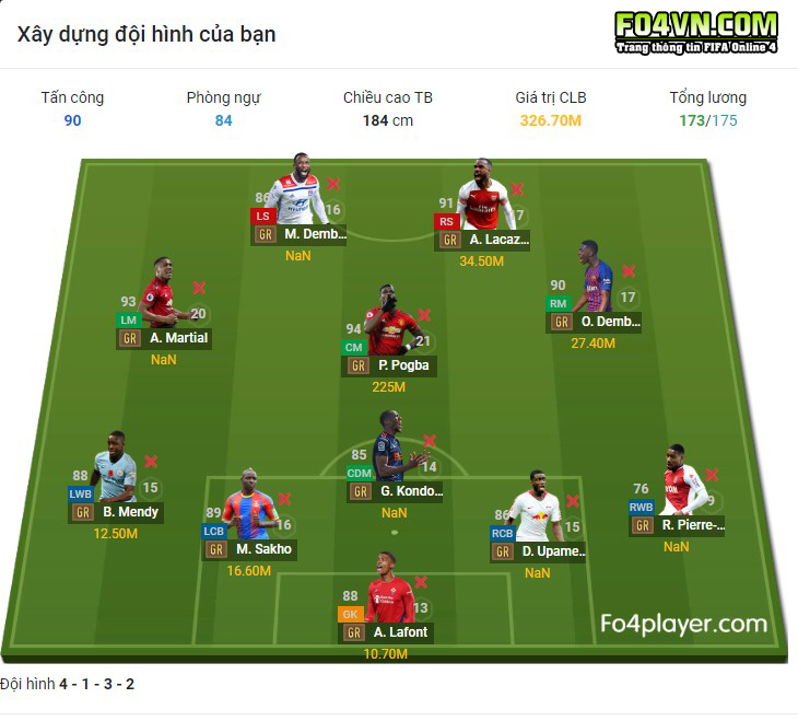 Bộ đôi tiền vệ cánh gồm Martial và Dembele : 2 cầu thủ có tốc độ rất tốt, khả năng bứt tốc nhanh và xử lý bóng rất kỹ thuật.