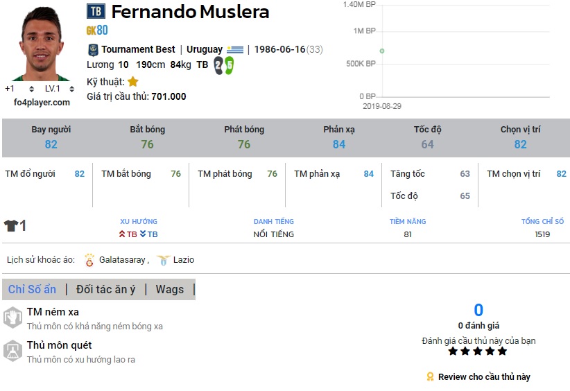 Chỉ số của Muslera | Nguồn : FO4PLAYER.COM