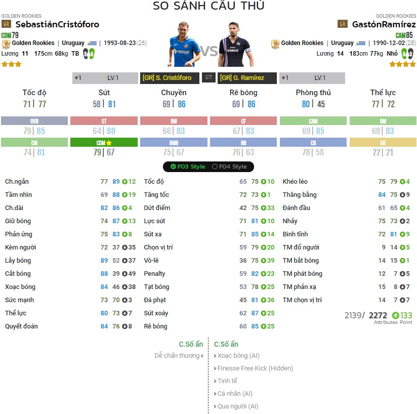 Chỉ số của Cristoforo và Ramirez | Nguồn : FO4PLAYER.COM