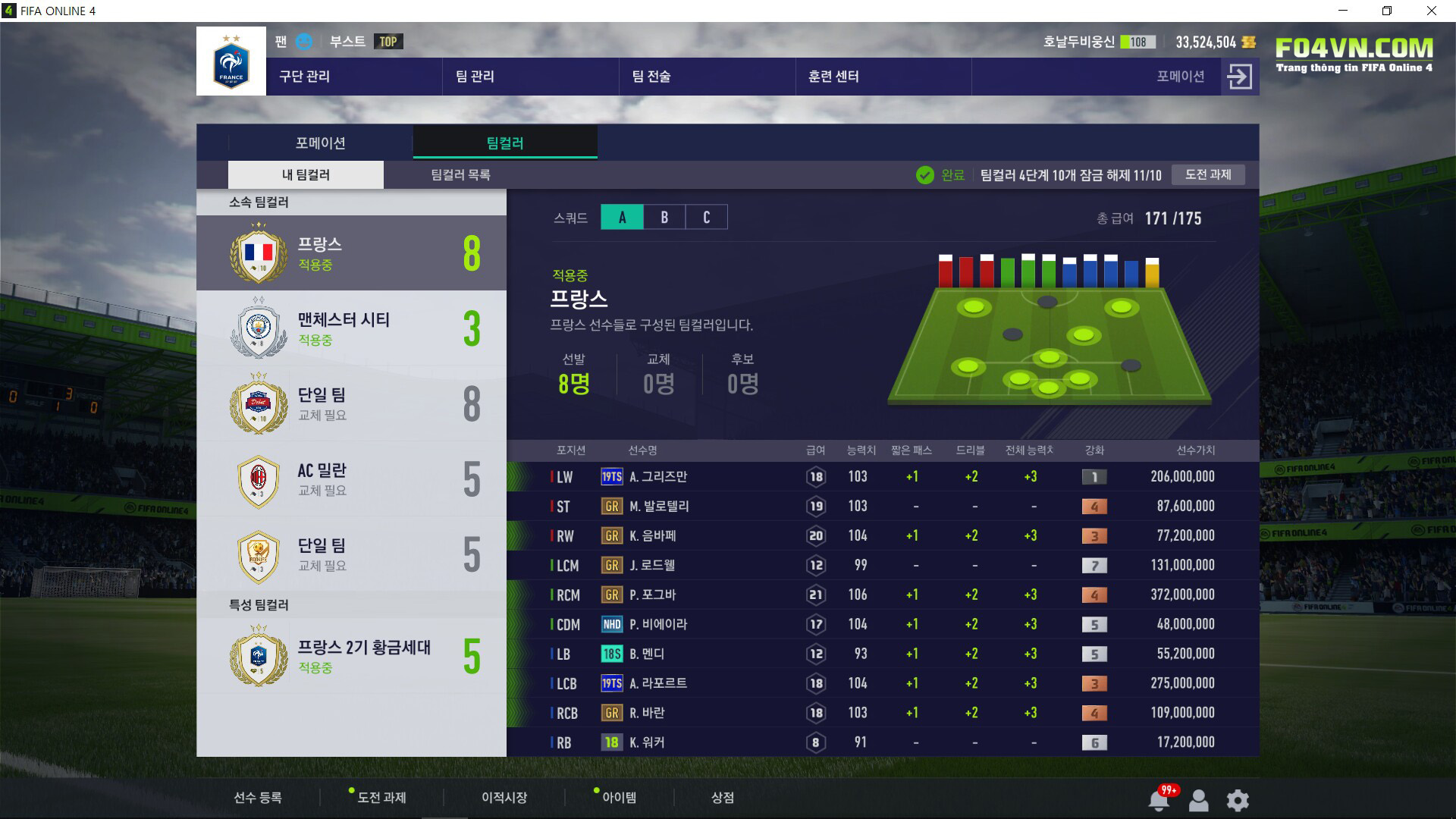 Team Color Pháp có tới 8 cầu thủ sẽ được cộng tối đa 3 điểm OVR. Ngoài ra, Team Manchester City cũng sẽ được buff 2 điểm OVR khi có tới 6 cầu thủ.