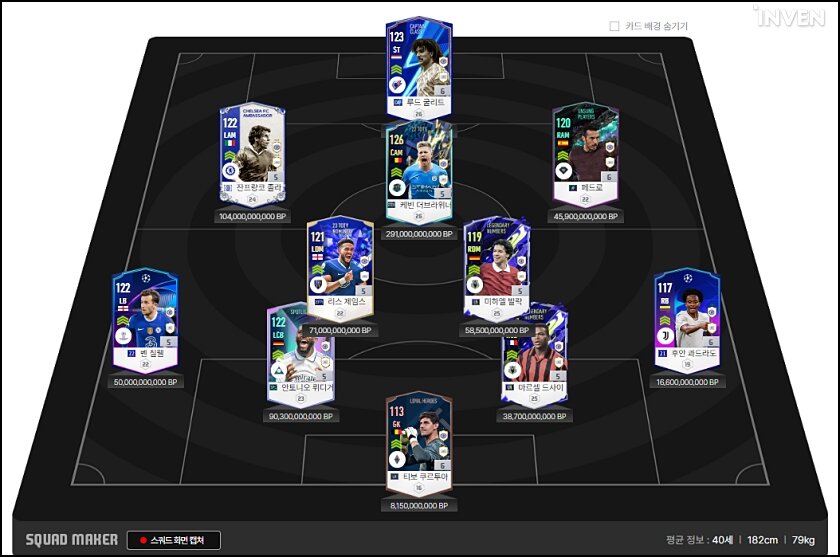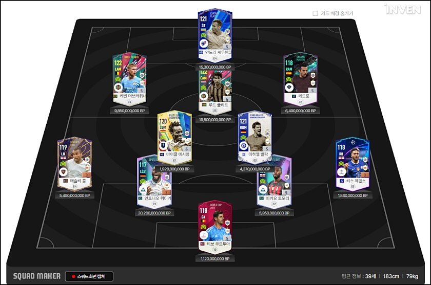 Tiền đạo cắm hàng đầu có thể kể tới nên được sử dụng chính là Shevchenko CAP vừa là tiền đạo chủ lực vừa giữ nhiệm vụ lãnh đạo đội trưởng trong đội hình. Bộ 3 tiền vệ công Gullit, Bruyne, Pedro các mùa như hình dưới đều là những cái tên rẻ đi đôi với chất lượng