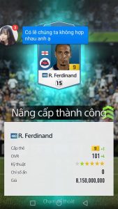 Thẻ cầu thủ mọi nhà đêu mong ướcLúc này thì trên TTCN thì cầu thủ có giá trị nhất vẫn đang là Ronaldo TT +5. Và giá của anh ấy đang là 4B3. Nhưng giá của Rio Ferdinand + 9 lên tới 8.150.000.000. Việc chưa thấy giá của Ferdinand cao nhất vì có lẽ chủ nhân của nó chưa đăng bán hay chuyển về acc nào đó.